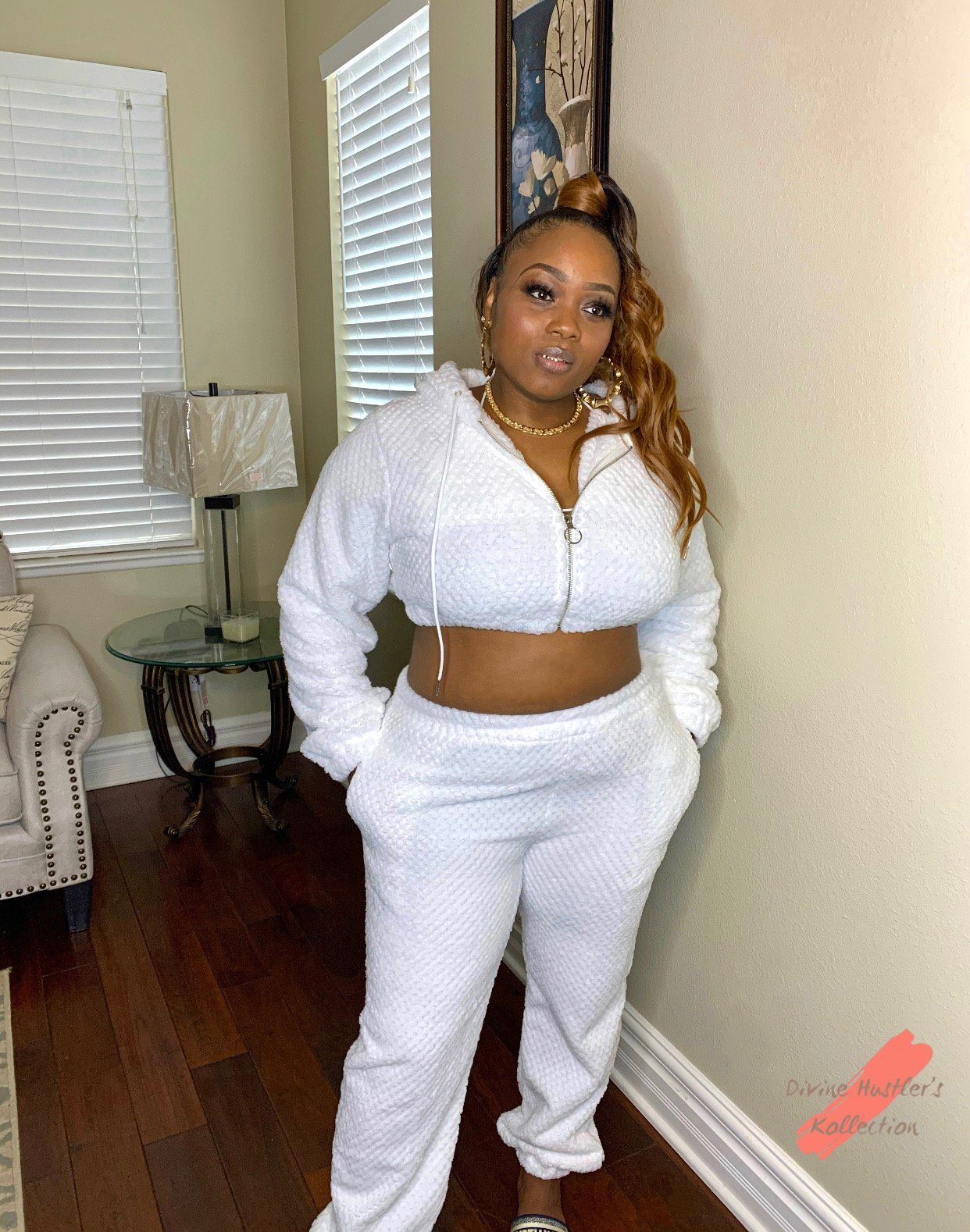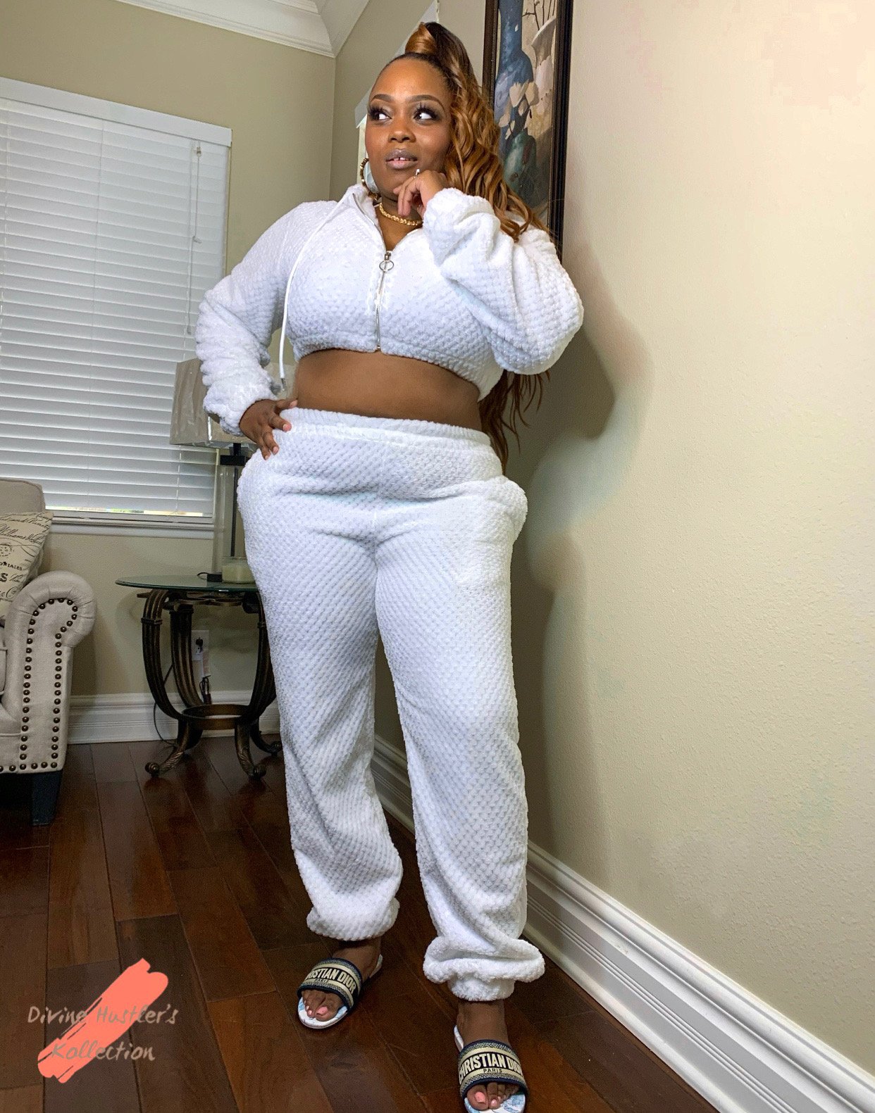 Featuring Hoodie Jacket Triangle Bra Top Jogger Bottom Fuzzy 3 Piece Set