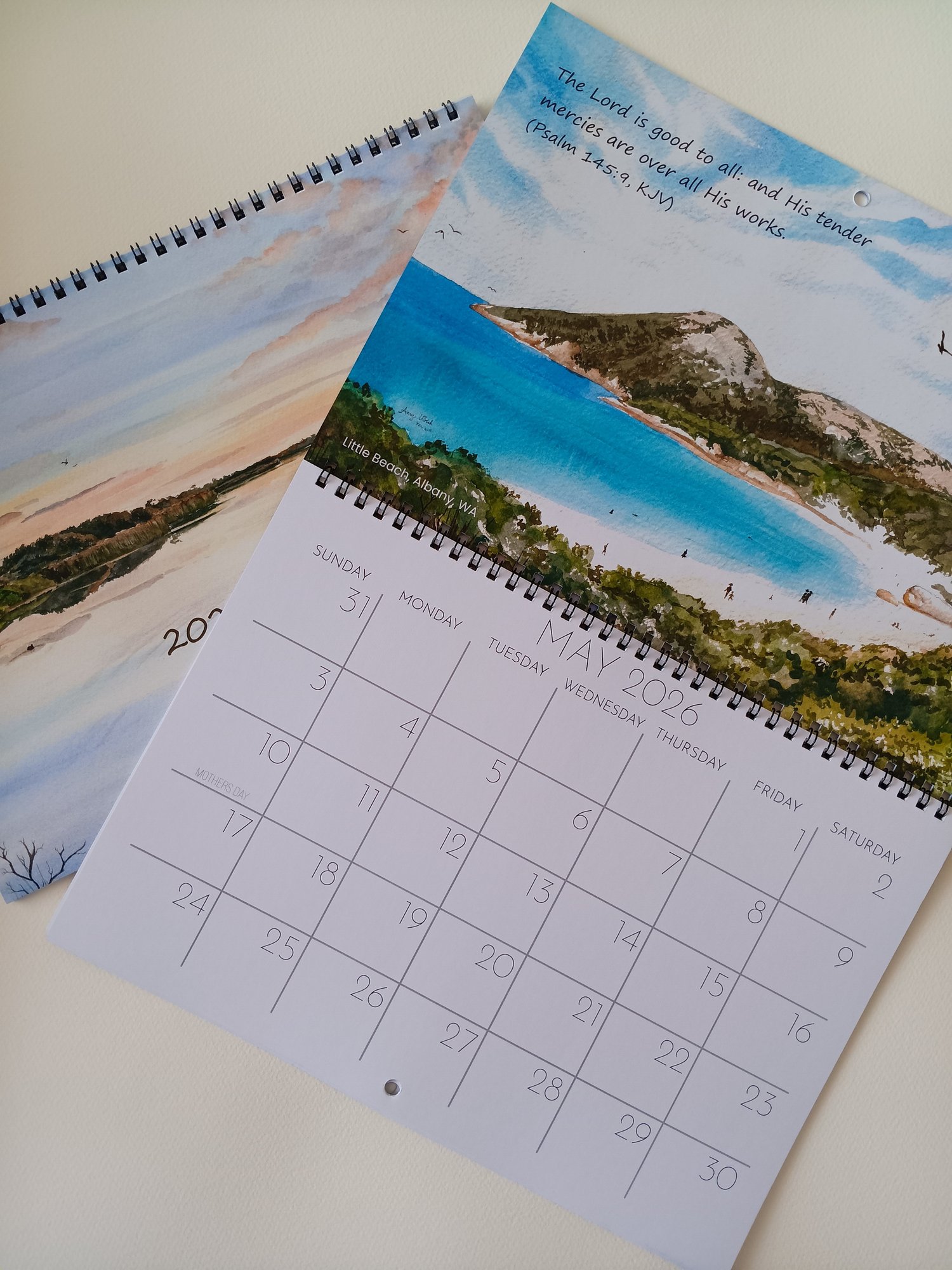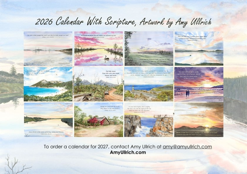 A 2026, spiral-bound calendar featuring artwork by Amy Ullrich.