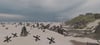 Highly detailed Normany map with landing boats, beach, bunkers, trenches & forest and villages beyond the beach.