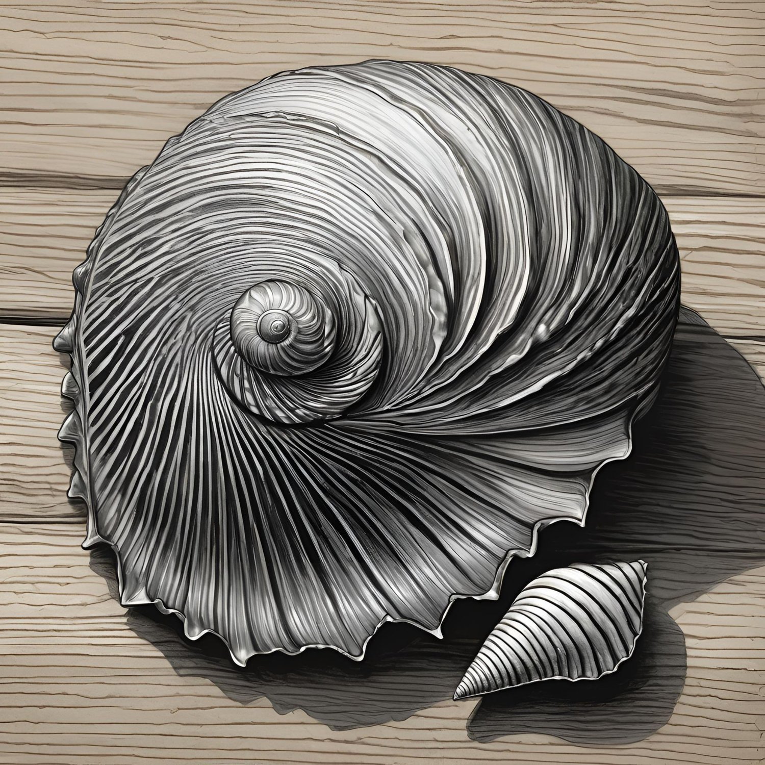 Celebrate the intricate elegance of nature with this black-and-white digital artwork of a spiral seashell. Rendered in rich tonal detail, this piece highlights every ridge, curve, and shadow, transforming a simple shell into a striking, minimalist masterpiece.