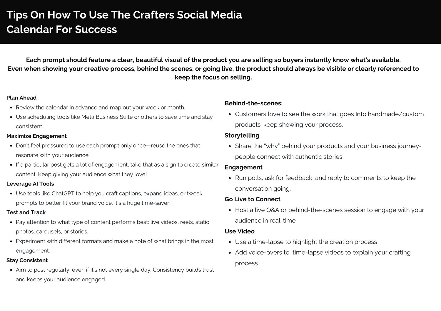 The 2026 Social Media Calendar for Crafters & Handmade Business Owners is a done-for-you content planning system that tells you exactly what to post every day, while still leaving room for your creativity and brand voice.