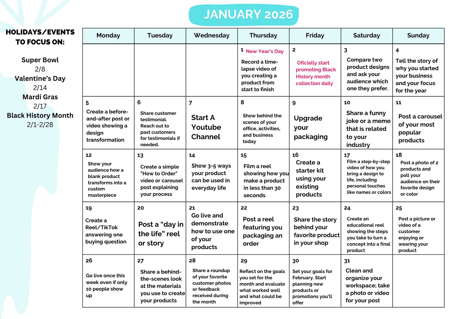 - Clear daily posting ideas