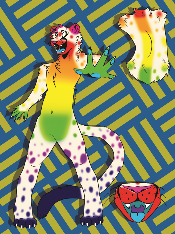Enjoy the new rainbow sona! looking for a new oc? one with bright colors? enjoy this adorable rainbow feline! Base and design was all done by me @Foxxo-Studios. Wanna see more of my art? Follow/watch me over on FurAffinity @XxLeo_FoxxX or on Tiktok @Foxxo_Studios! Credit me as original artist/creator! Only one of these adoptables will be available!