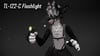 The TL-122-C was the designated upgrade for the TL-122-A and TL-122-B flashlights when it was issued in April of 1944. However, the TL-122-C was the most widely utilized version issued to U.S. troops. The TL-122-C was primarily made of plastic to assist in the war effort by reducing its use of vital metals. One of the main components of the TL-122-C included a button used to quickly turn the flashlight on and off for signaling purposes. Additionally, the TL-122-C featured an extendable base with a compartment that housed a number of colored lens filters and spare bulb. The recognizable design of the TL-122-C and its crookneck was copied numerous times by various countries after World War 2, seeing their use continue even into military's of the modern day.