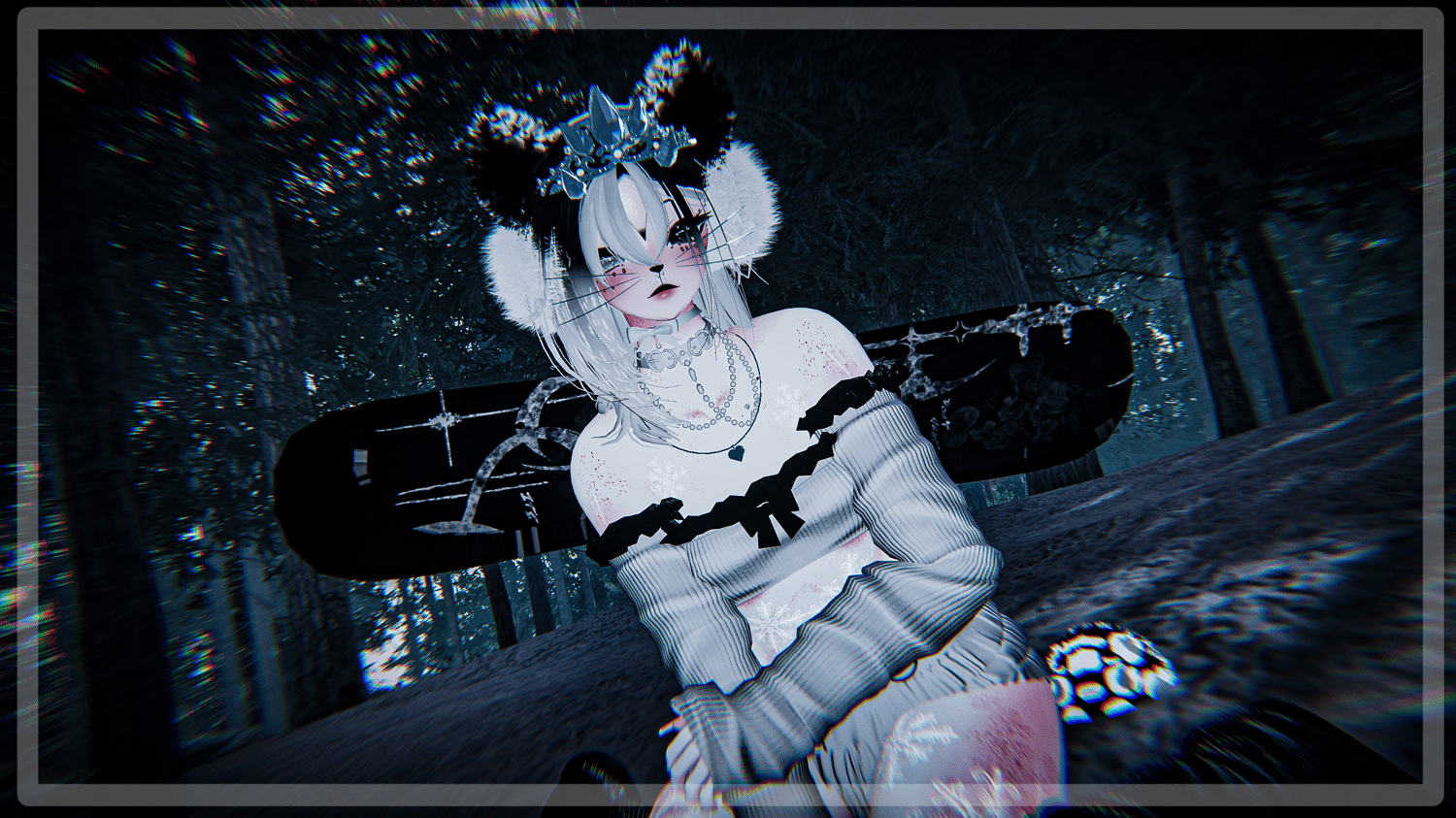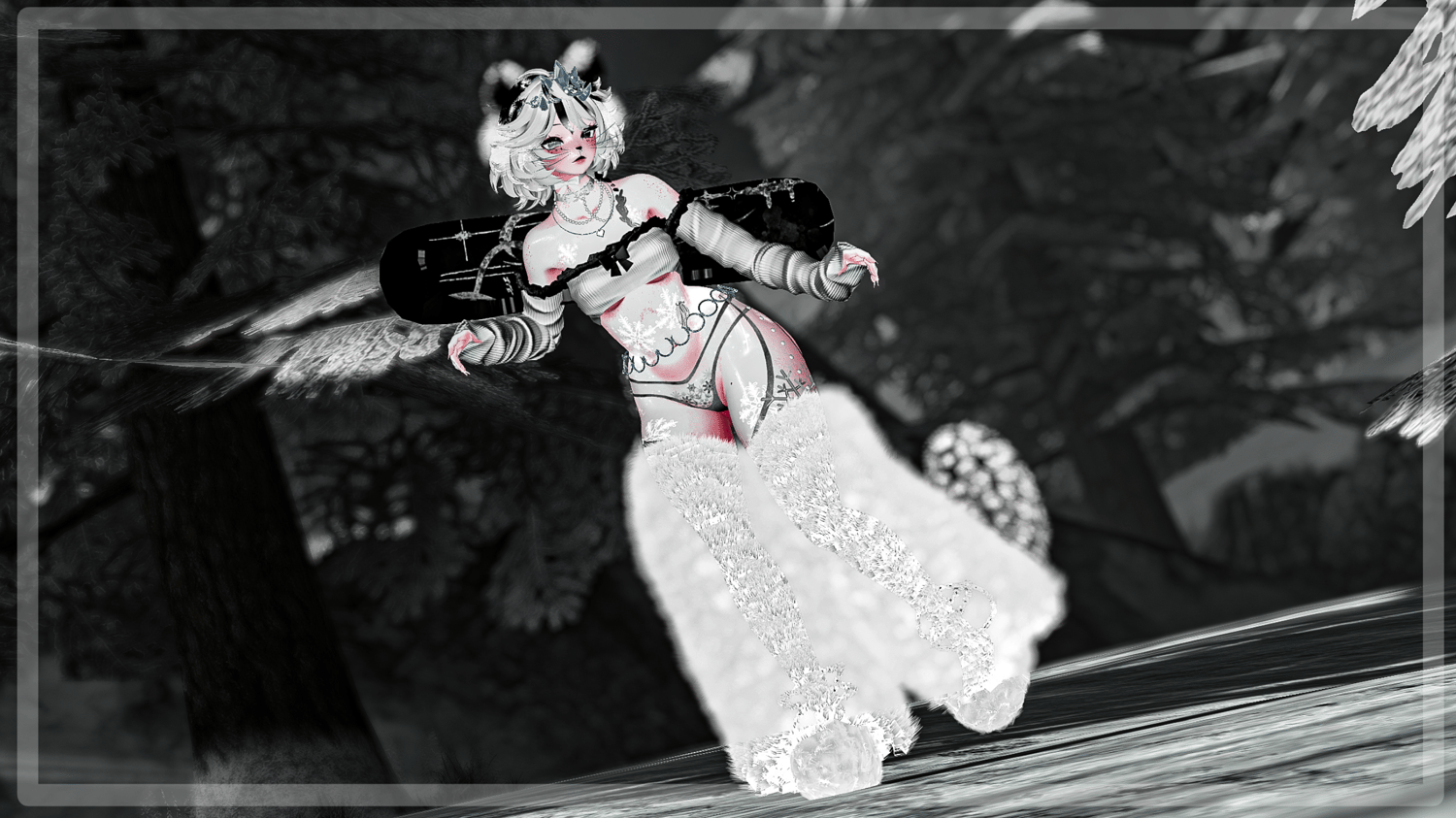 - body - Zinpia (edit no reuse), head - Saikura (edit no reuse), face texture (edit no reuse), nose piercing by me, Hair 1 - Minki, Hair 2- Minki, Hair 3 - Alma, Hair 4, uggs - Weeby, cute sweater - cupkake, snow outfit - soleia, cute snow fit - soleia, snow floats, pants, snow board and goggles, bra and pantie, bunny mouth, snow leopard, glasses, hat, ice skates, flow toy, flow toy 2, body texture