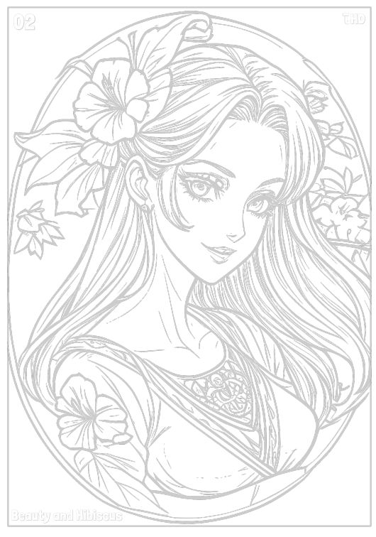 - 30 Original Coloring Pages: Each page offers a captivating design to lose yourself in, featuring beautiful women, intricate mandalas, and the vibrant beauty of hibiscus flowers.