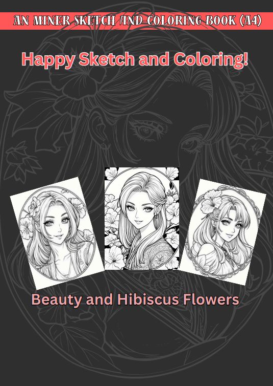 A4 An Miner Sketch and Coloring Book: Beauty and Hibiscus Flowers for Adults