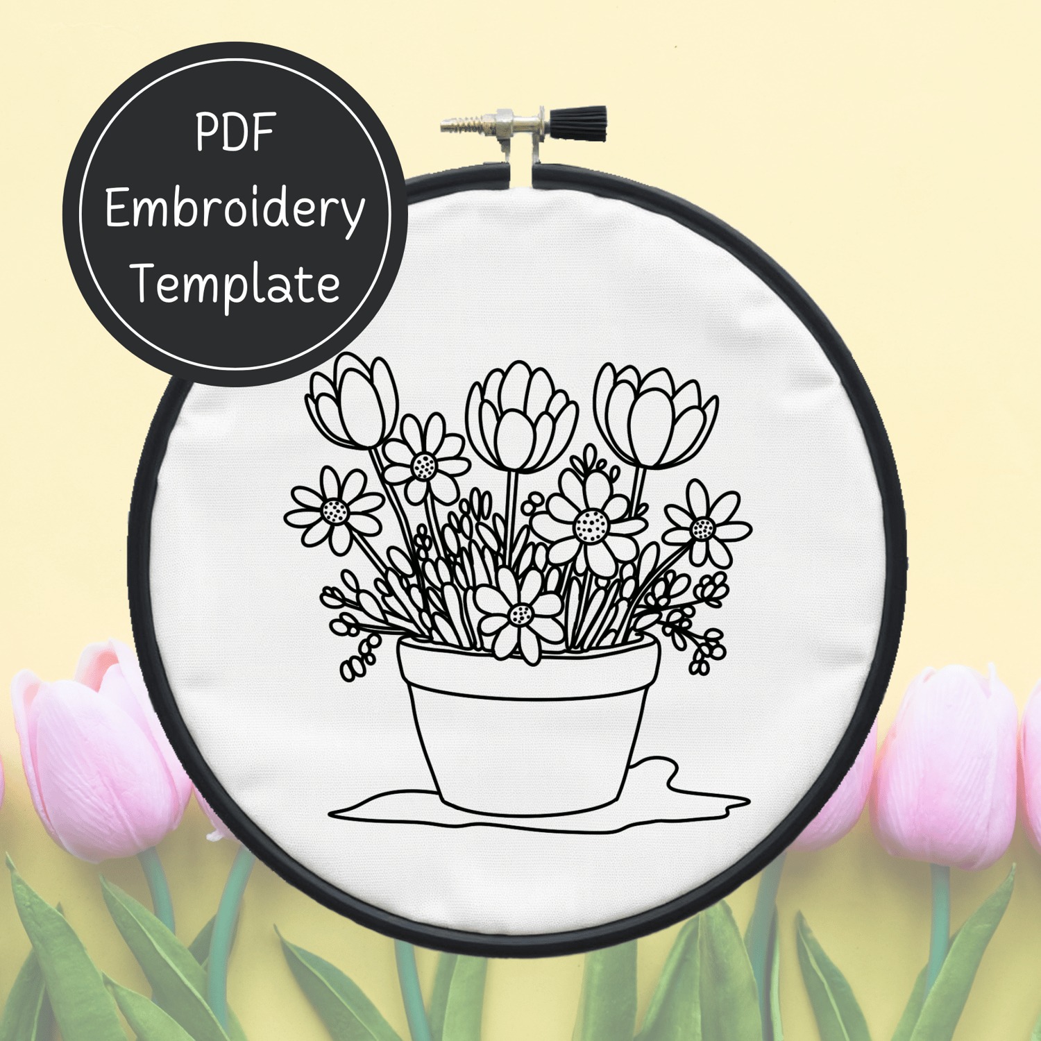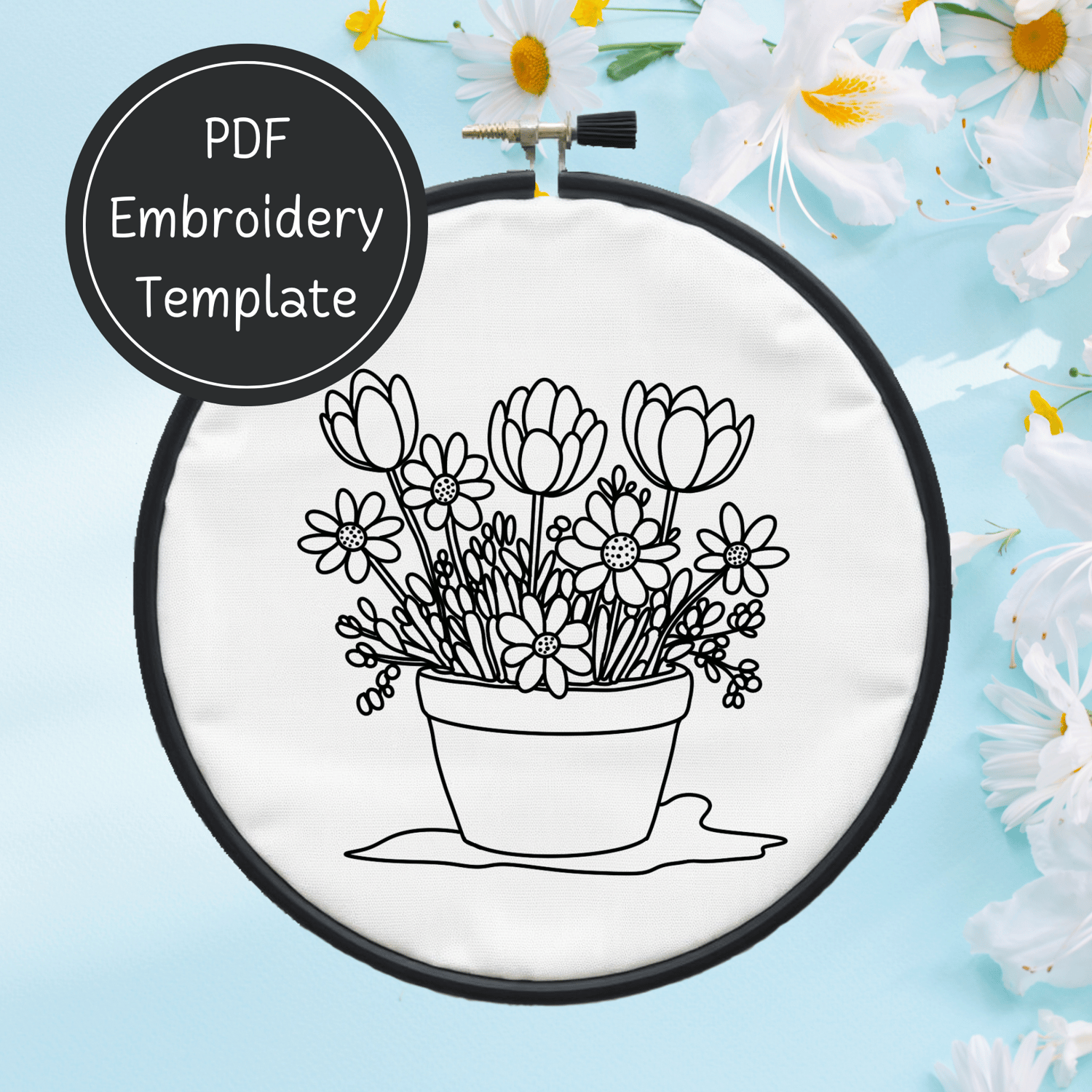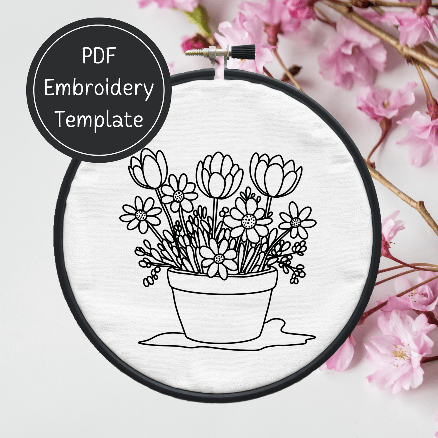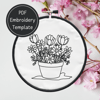 Spring Flowers Embroidery Template PDF - DIY Flower Pot Design For Hand Stitching - Instant Download