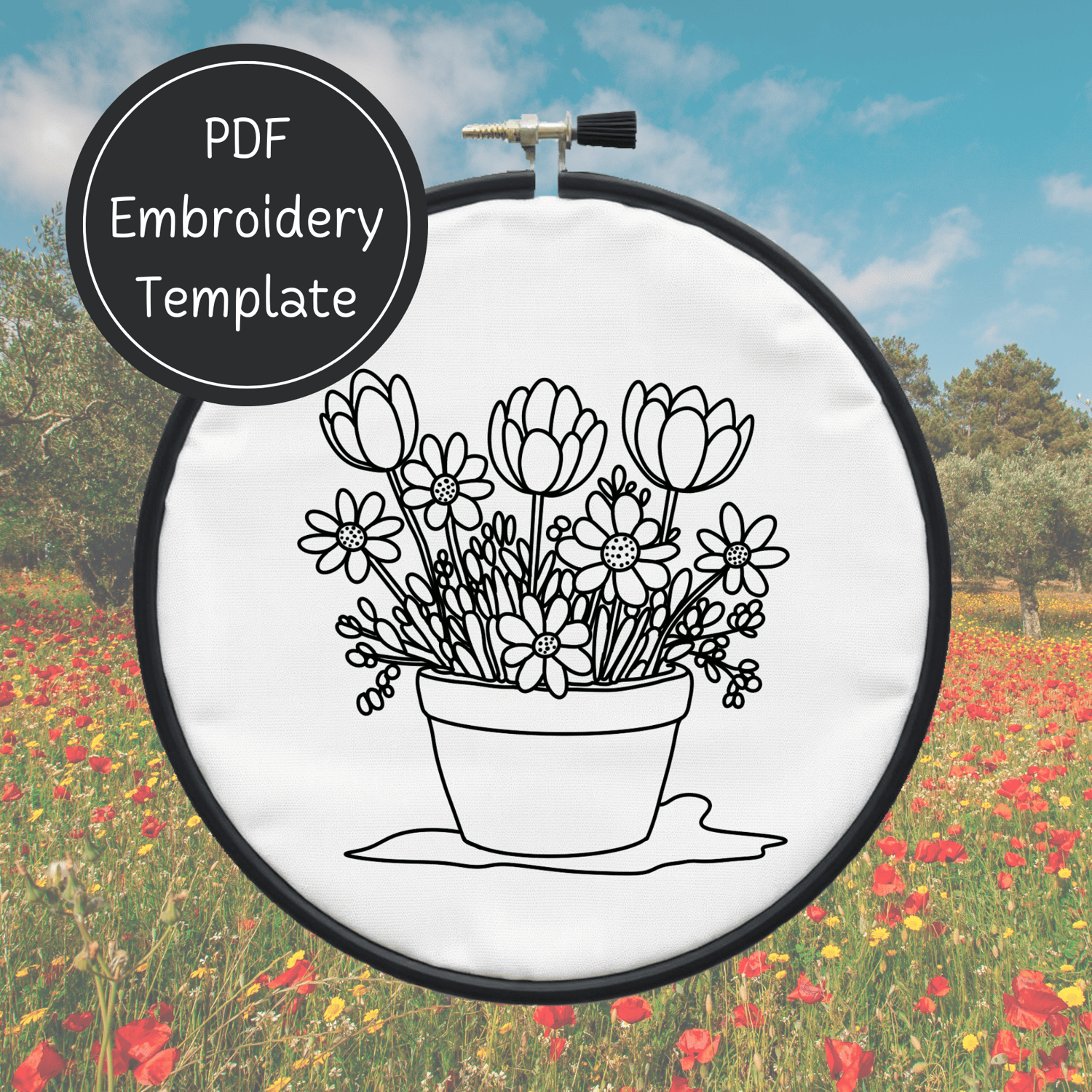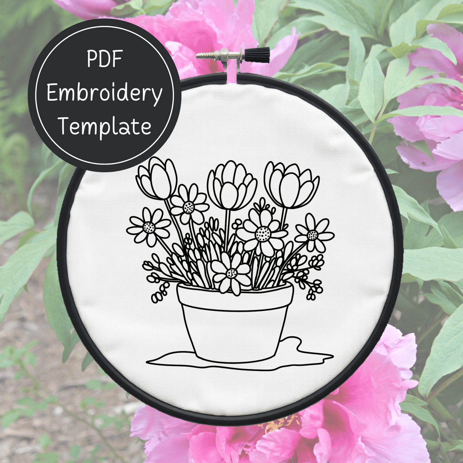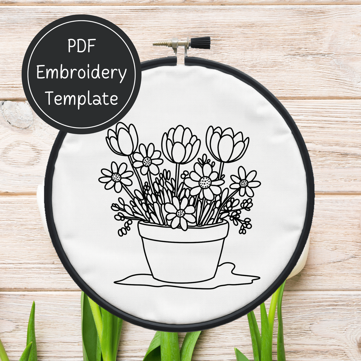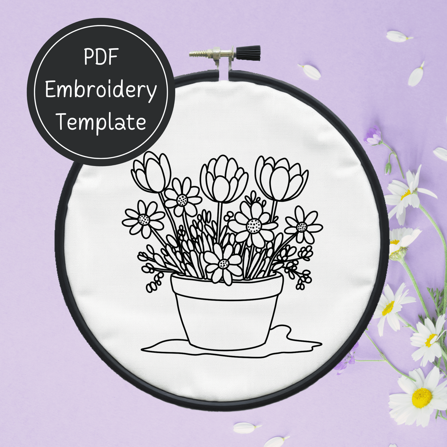 Spring Flowers Embroidery Template PDF - DIY Flower Pot Design For Hand Stitching - Instant Download