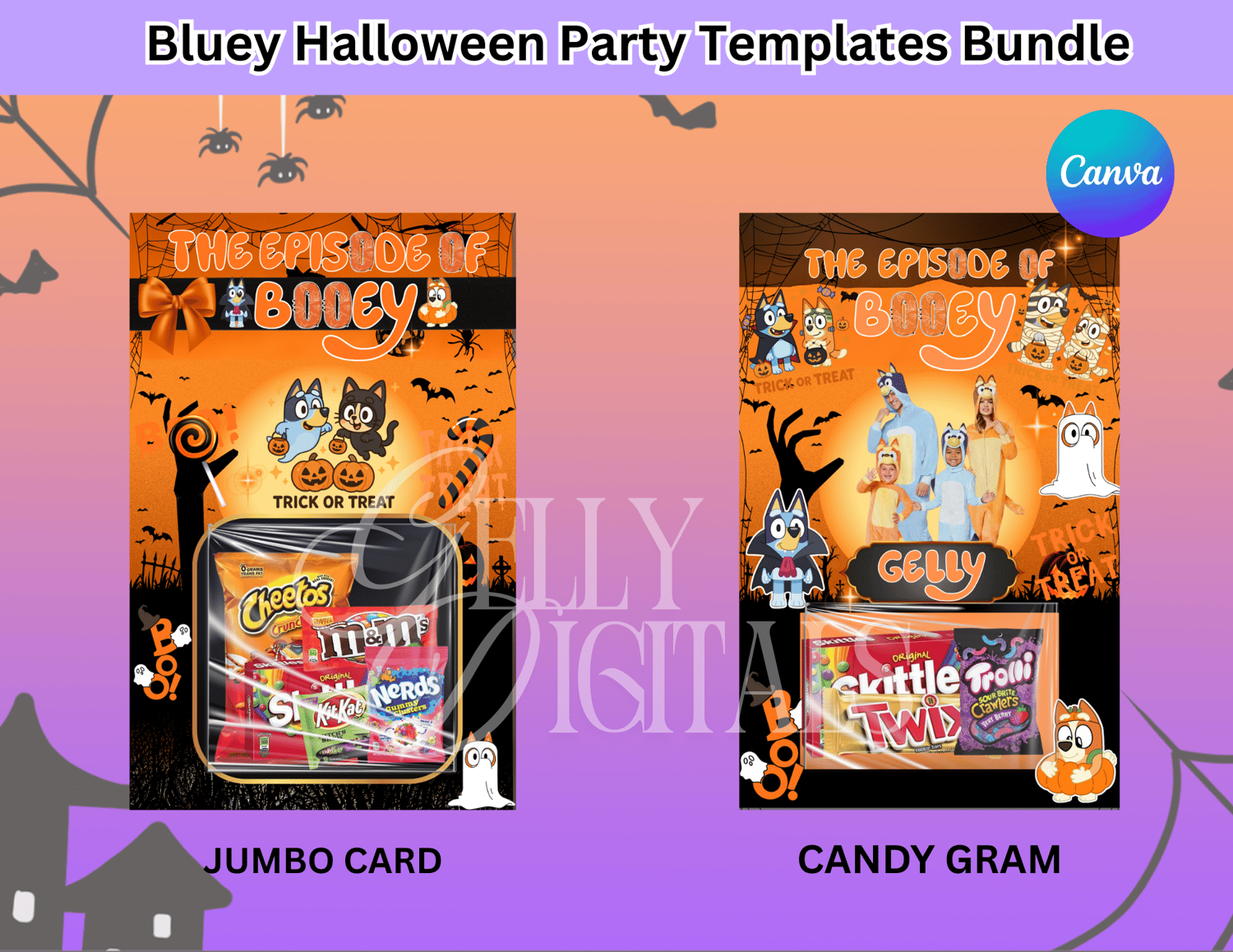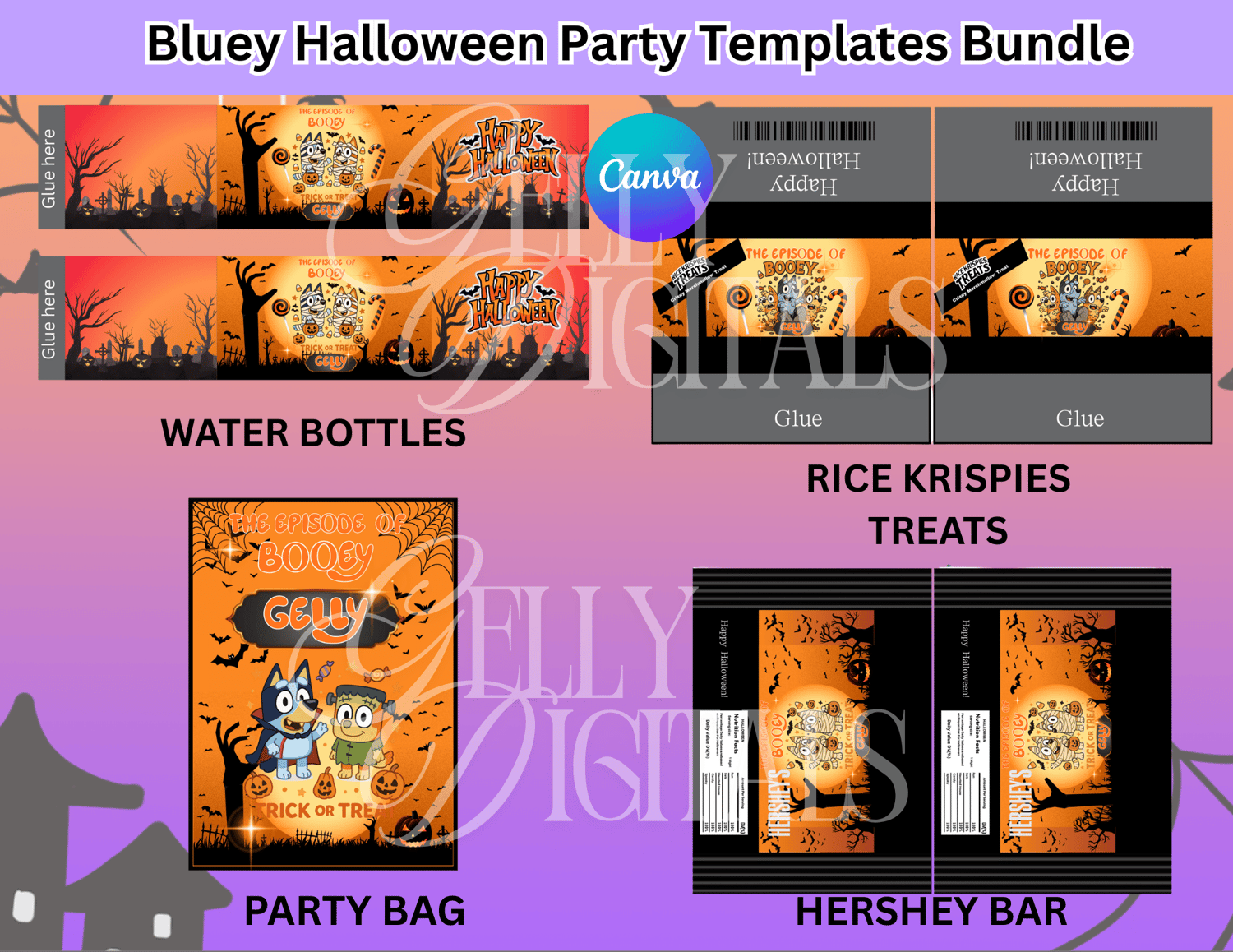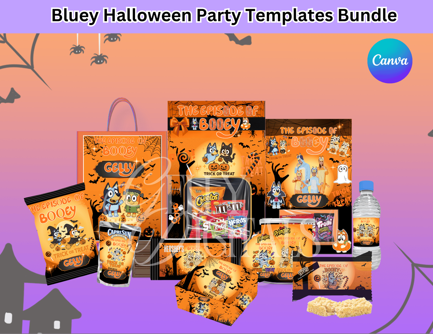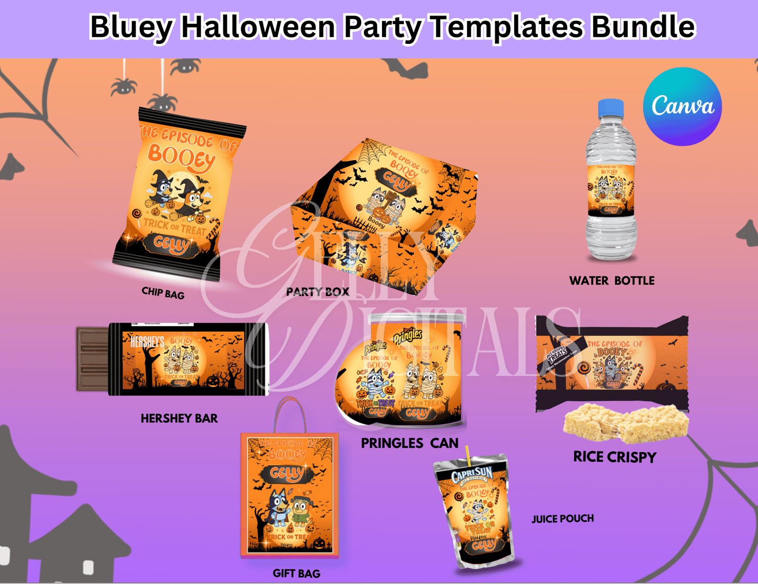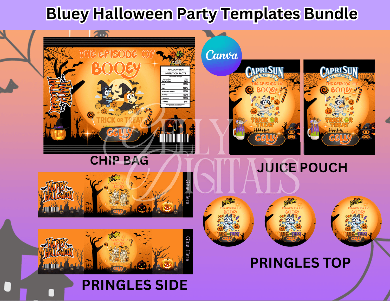 👻🎃 Get spooky and playful with our Bluey Halloween Party Templates Bundle! Perfect for trick-or-treat bags, snack labels, drink wrappers, and more – all editable in Canva.