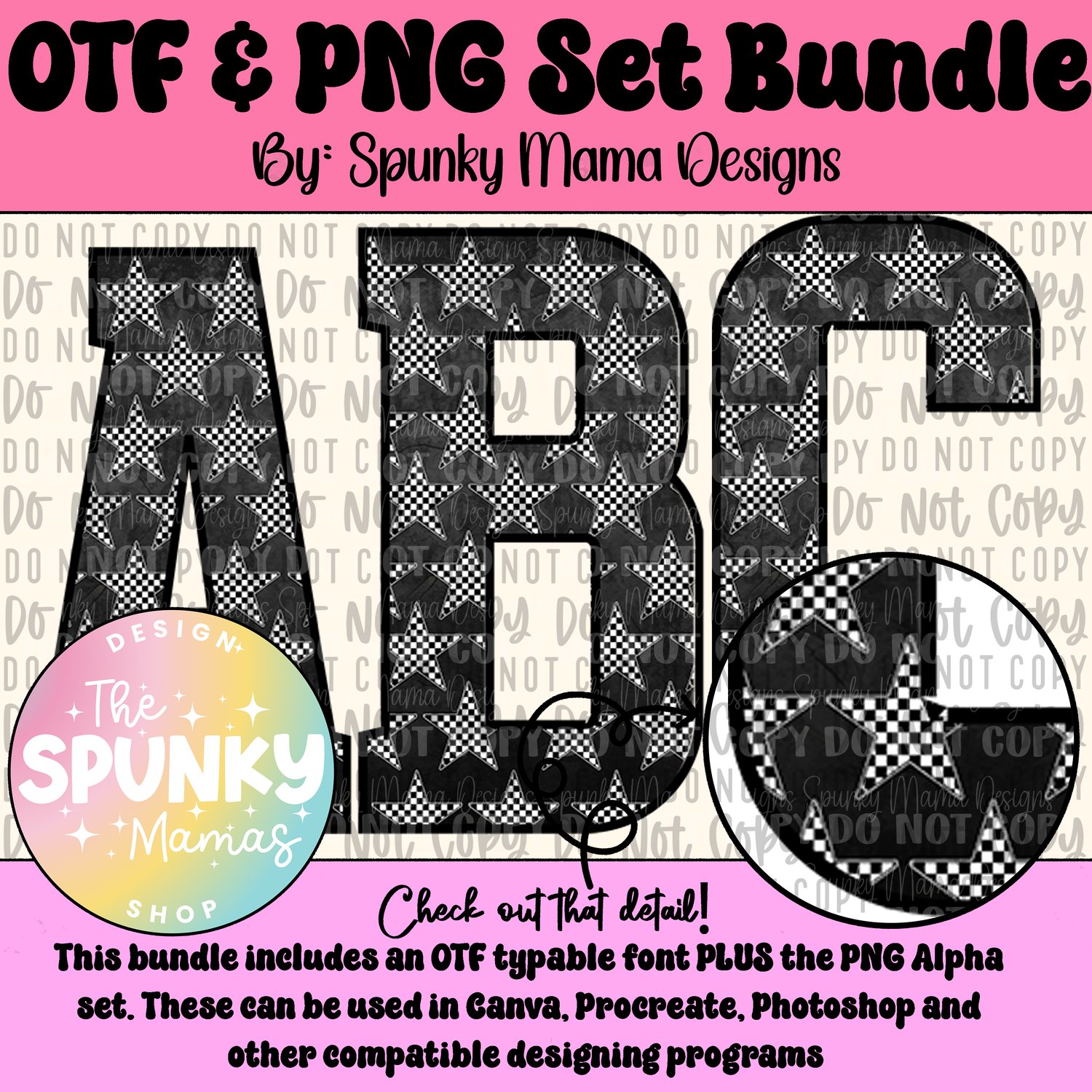 Black Checkered Star OTF Font and Digital PNG Alpha Set
