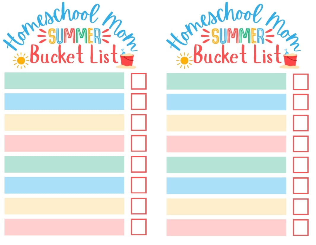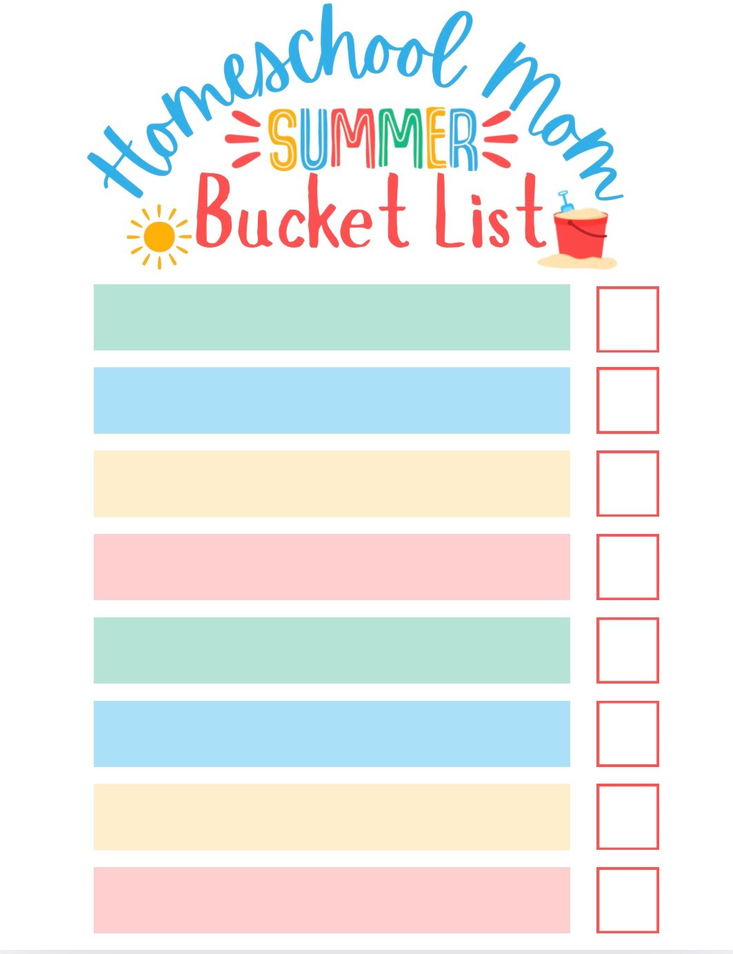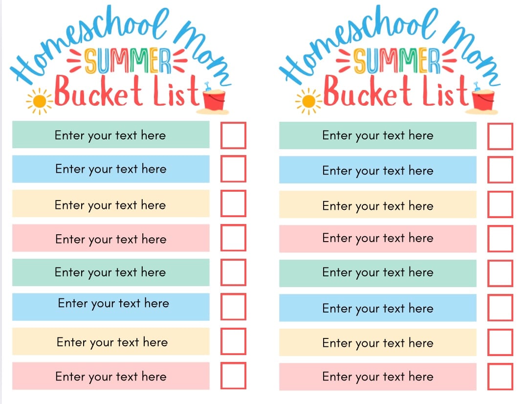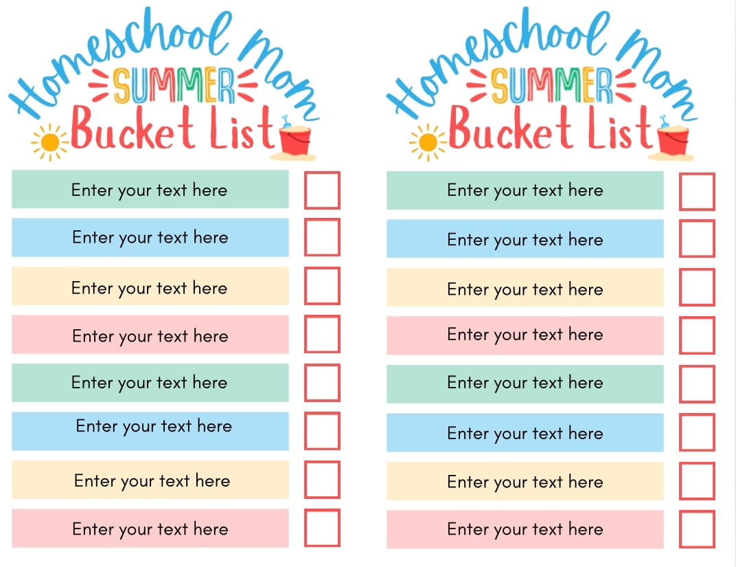 Homeschool Mom Summer Bucket List Canva templates and PDFs