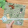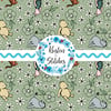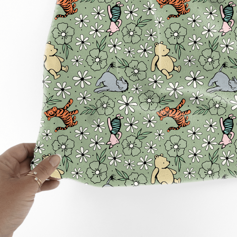 Classic Pooh storybook friends from the 100 Acre Wood, including Eeyore, Tigger and Piglet on soft sage green.