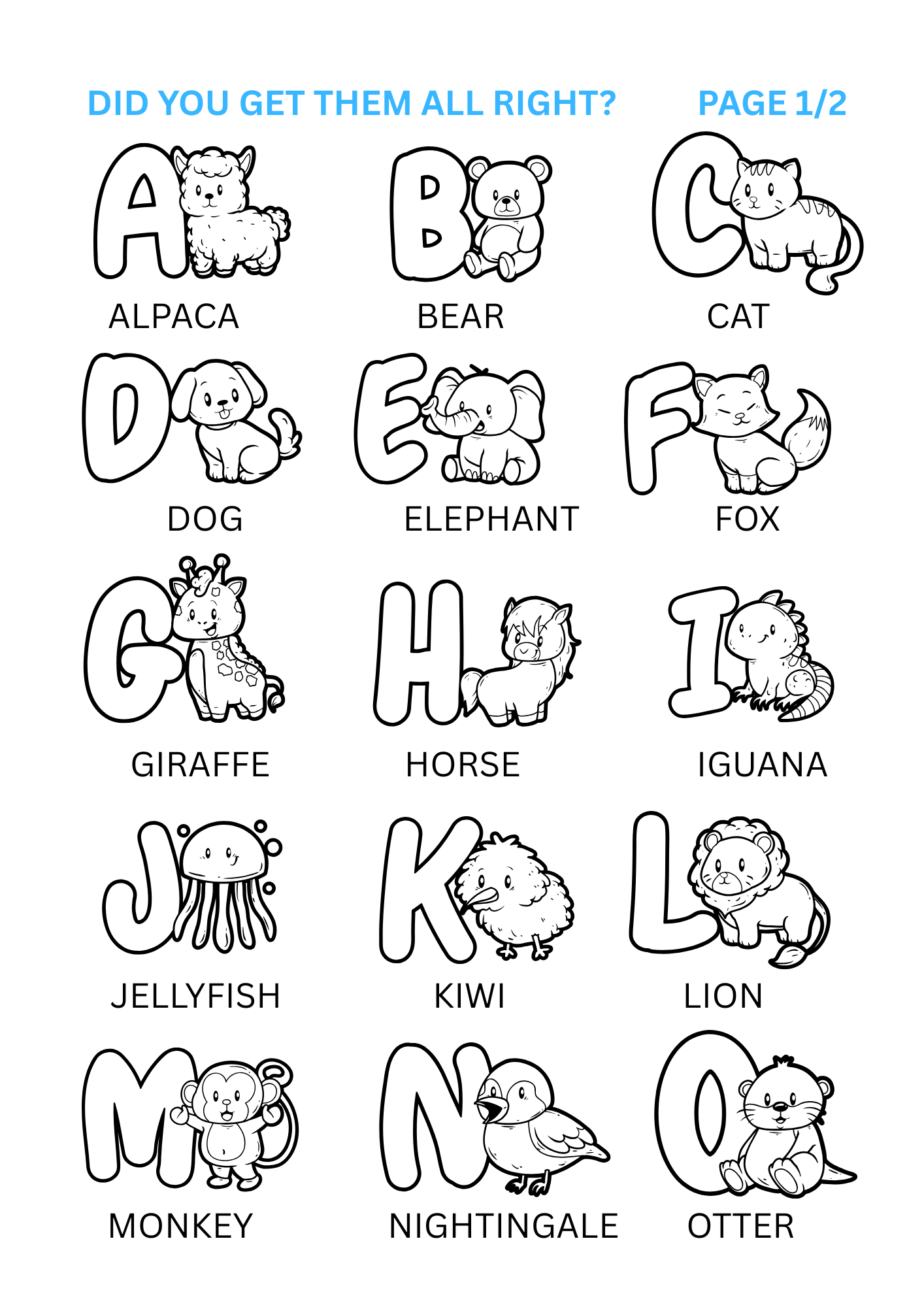 - Each letter is paired with a fun animal to discover and color