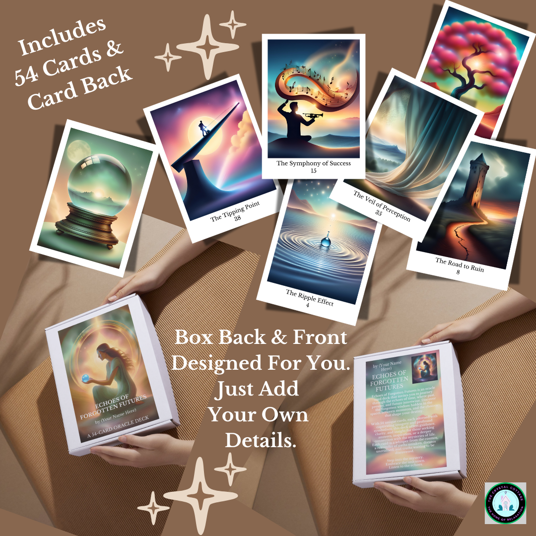 - Customisable Box Design: Includes front and back designs for your oracle card box, with beautiful artwork and space for your branding or personal touches.