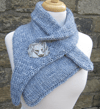 Samhain can be made to any size you want. A single skein of 4ply/fingering gives a good sized cowl to showcase a shawl pin or treasured brooch. Two skeins of 4ply yields a large shawl. The bulky weight version, shown here in Malabrigo Mecha (colour Polar Morn), knits up really quickly and takes less than 2 skeins of yarn.