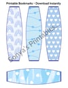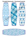 12 Blue Valentine Bookmarks | Printable Heart And Rainbow Bookmarks | Blue Bookmarks | Blue Valentine Page Holders