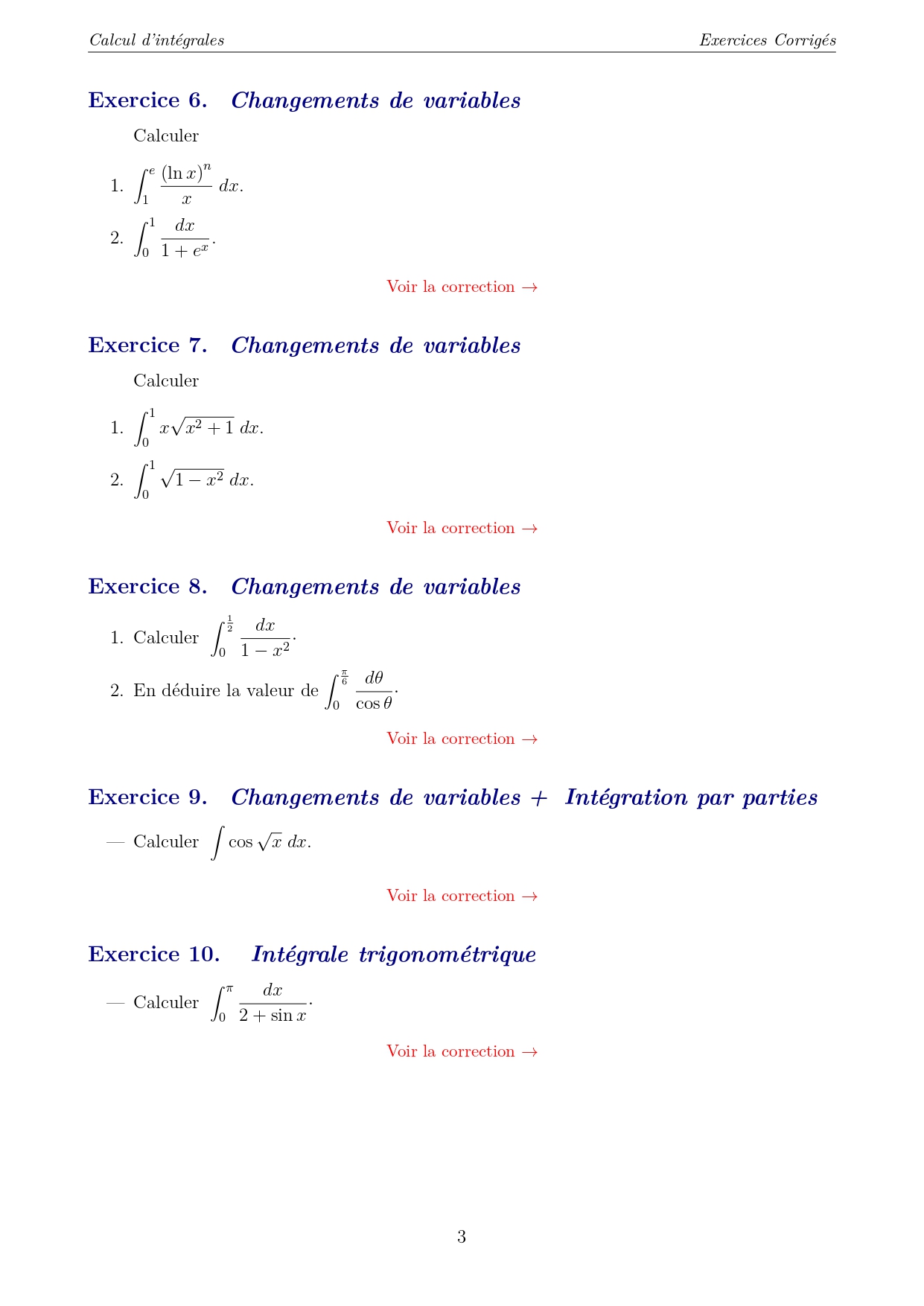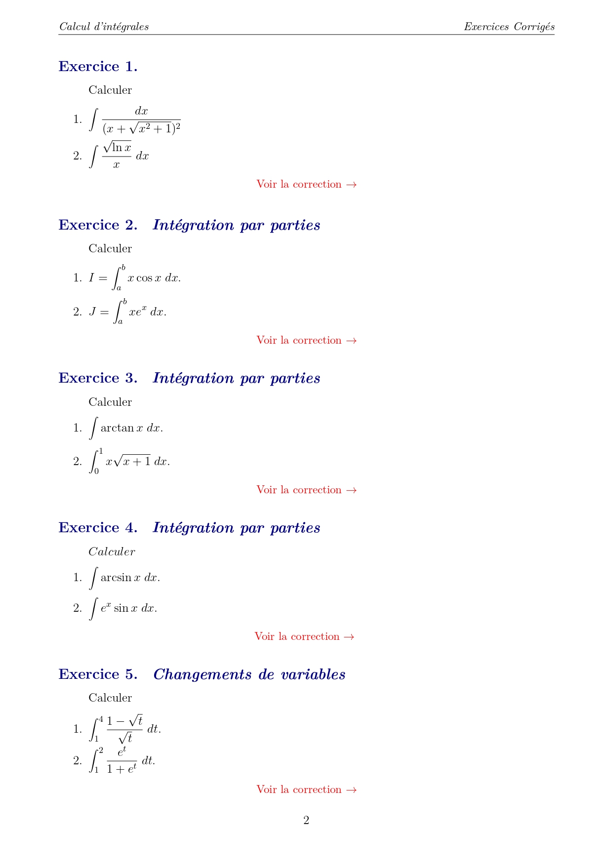 📘 Série d’exercices corrigés – Calcul d’intégrales