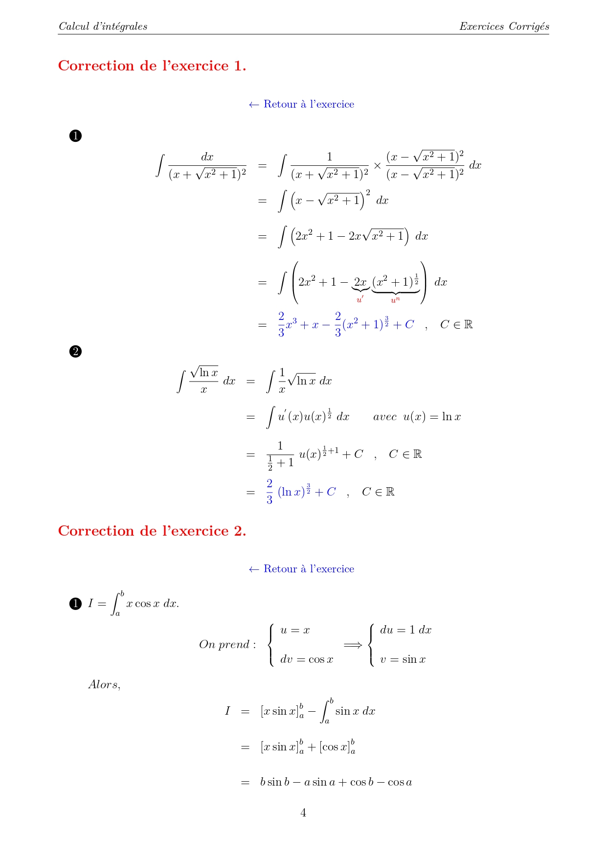 Série complète : Exercices corrigés de Calcul d’Intégrales