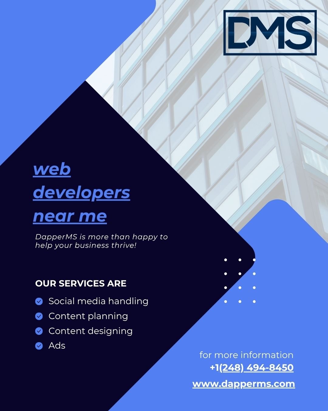 When users search for web developers near me, you want to be visible. With Dapper MS, you’ll not only get a great website, but also one that’s discoverable and built to rank.