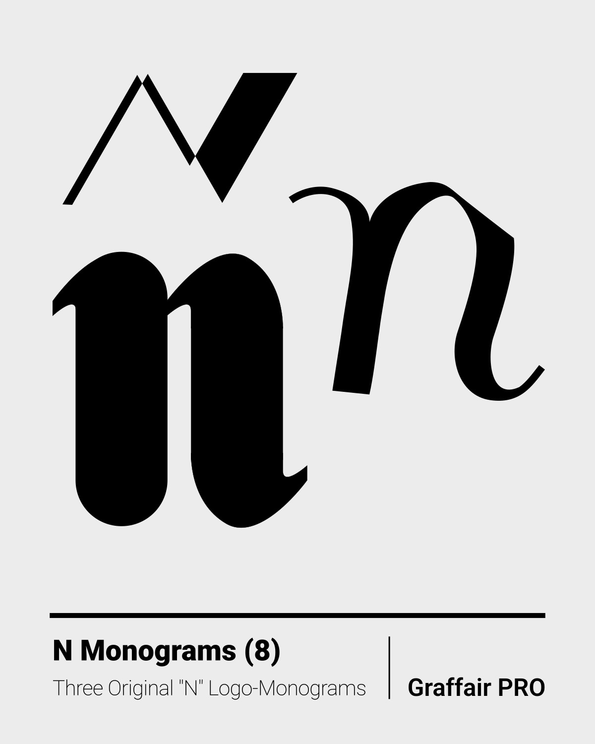 N Monograms (8): The 8th set of three original "N" logo monograms, included in the "1050 SVG Monograms" super bundle, which also features an Index catalog.