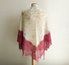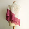 Pink Monarda is a shawl in 2 sizes, designed to use that skein of speckled yarn you just couldn’t resist. The shawl pictured is size L. In this design, it is paired with the lovely flower lace border in a contrasting solid color. Go wild with the color combinations!