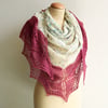 Patterning in the edging of the shawl is on both RS and WS rows. Stitches used include knit, purl, skp, k2tog and yo. This pattern is suitable for the intermediate to advanced knitter.