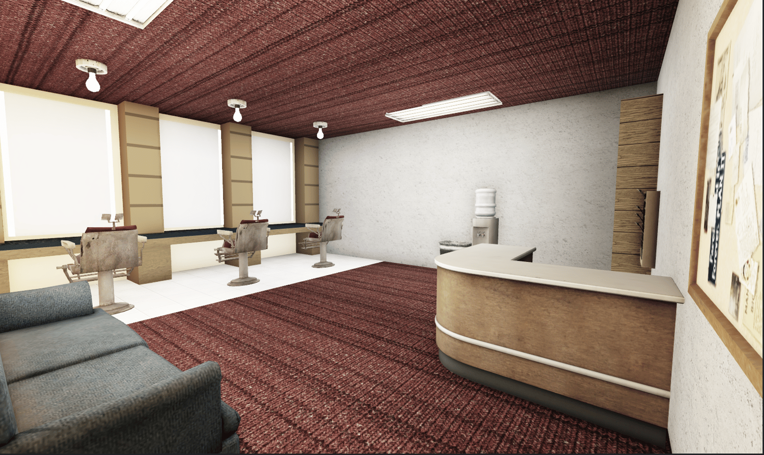 - Structures include restaurants, a gas station, barber shop, jewellery store, etc.