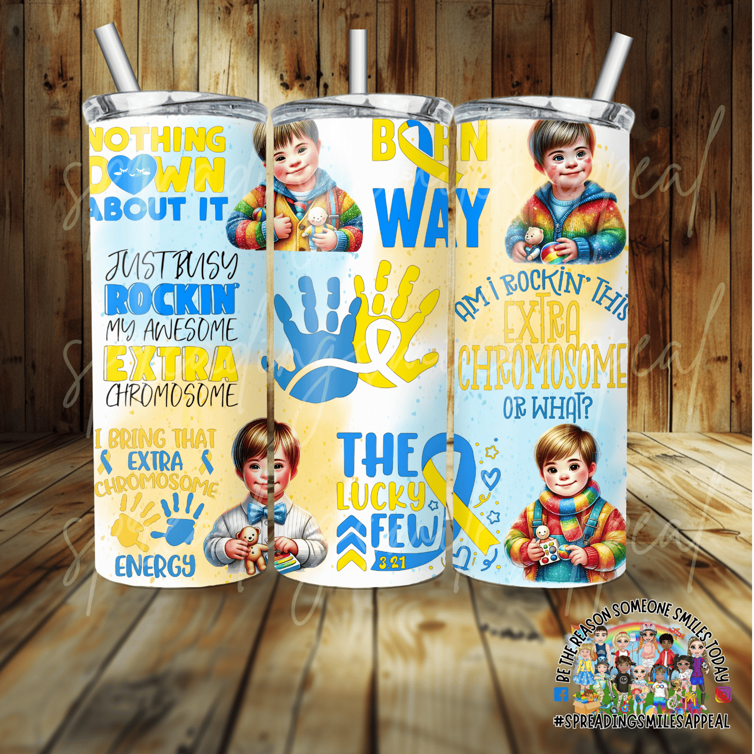 DOWN SYNDROME BLUE AND YELLOW TUMBLER