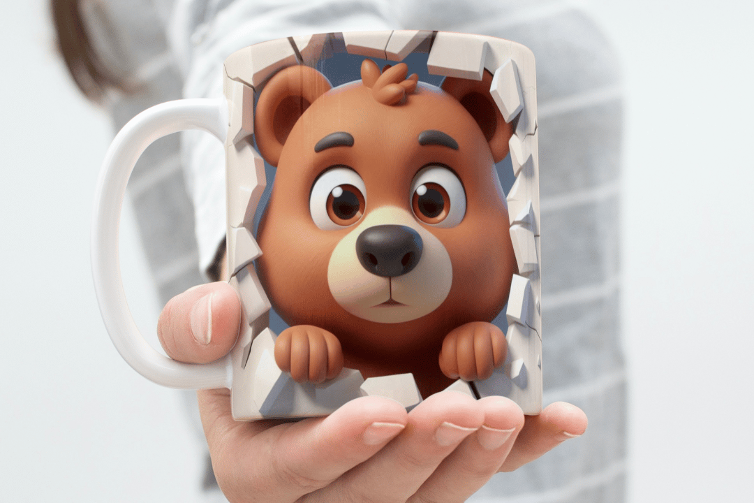 Create delightful and unique mugs with this charming 3D bear cartoon design. Perfect for crafting lovable, one-of-a-kind mugs that everyone will enjoy!