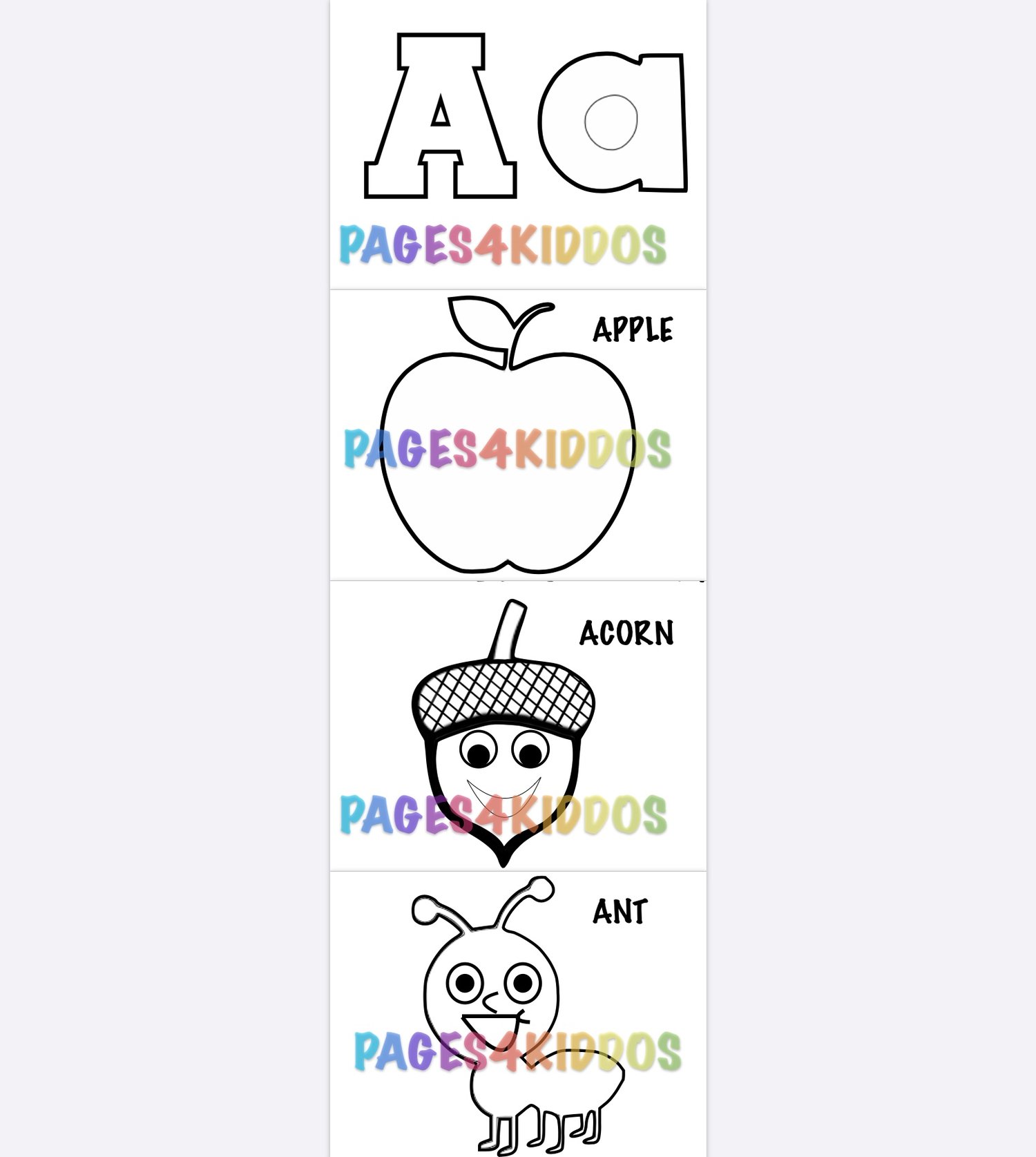 Letter A And Words That Start With A! 4page package START YOUR KID AHEAD WITH PAGES4KIDDOS