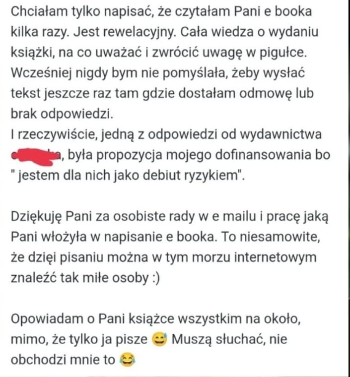 Dołączysz do zamkniętej grupy na Facebooku, gdzie możesz prosić o pomoc w przygotowaniu propozycji wydawniczej i szukać indywidualnych porad.