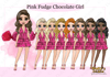 Instant digital download of our Pink Fudge Chocolate Dolly Character Bundle PNG (34 PNG’s)