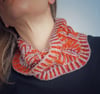 This cowl incorporates strategically placed increases and decreases to combine a chevron stitch pattern with two-color brioche. The biasing of the fabric naturally pulls the middle of the cowl in for a comfortable fit and results in an attractive wave at the edges.