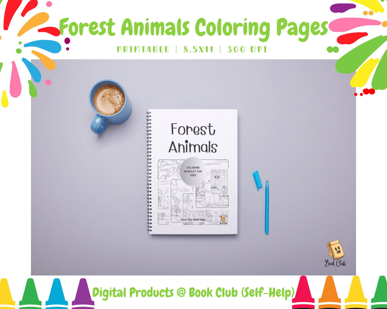 🎨 Printable | Instant Download | Booklet Cover & Forest Animals 22 Coloring Pages