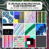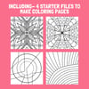 17 JPG files to create an endless amount of patterns (13 design files in multiple styles & colors, and 4 black and white line art files to source coloring pages!)