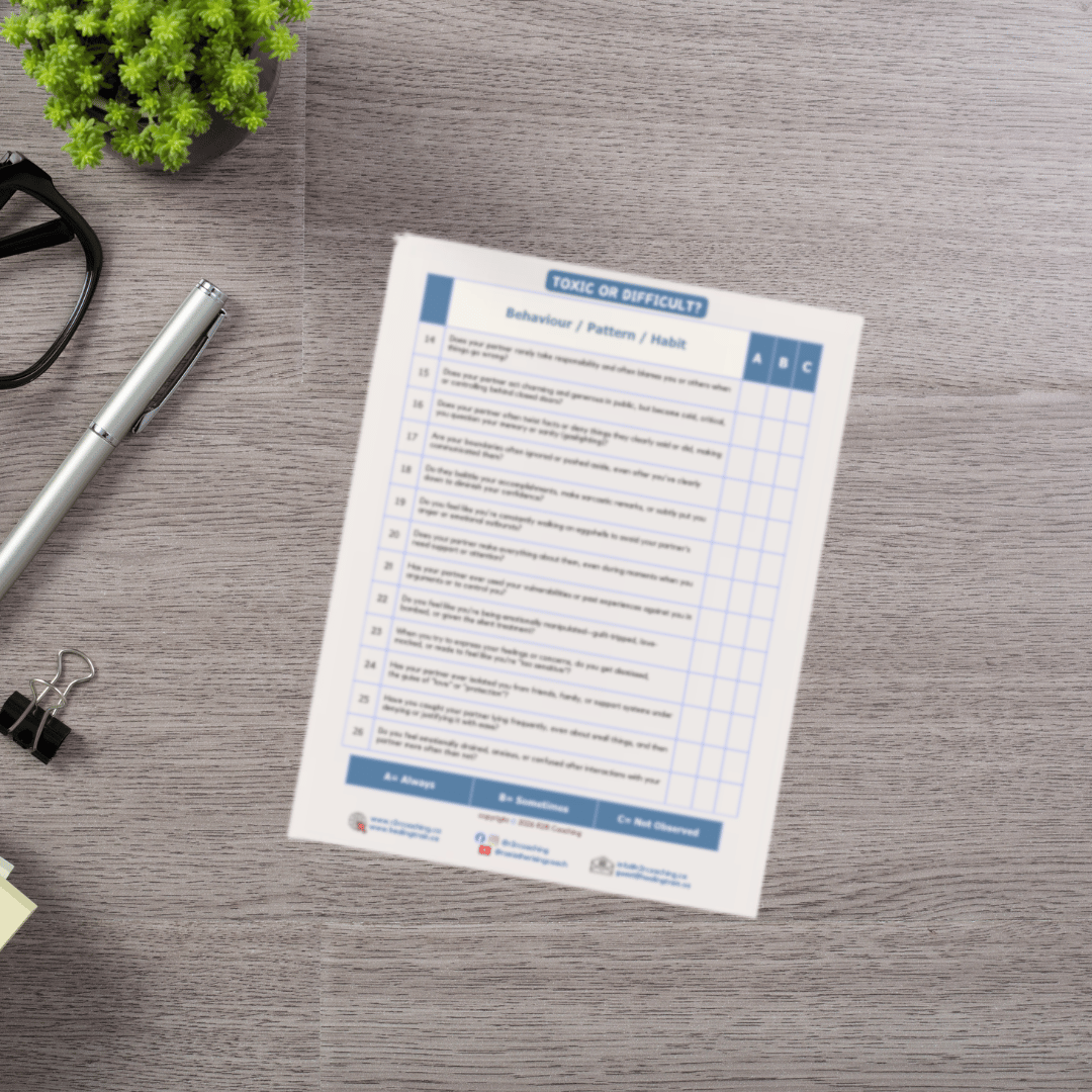 This questionnaire will gently guide you to look deeper into your relationship dynamics, helping you identify red flags, emotional manipulation, and hidden patterns of toxic or narcissistic behaviour that may be affecting your self-worth, confidence, and peace of mind.