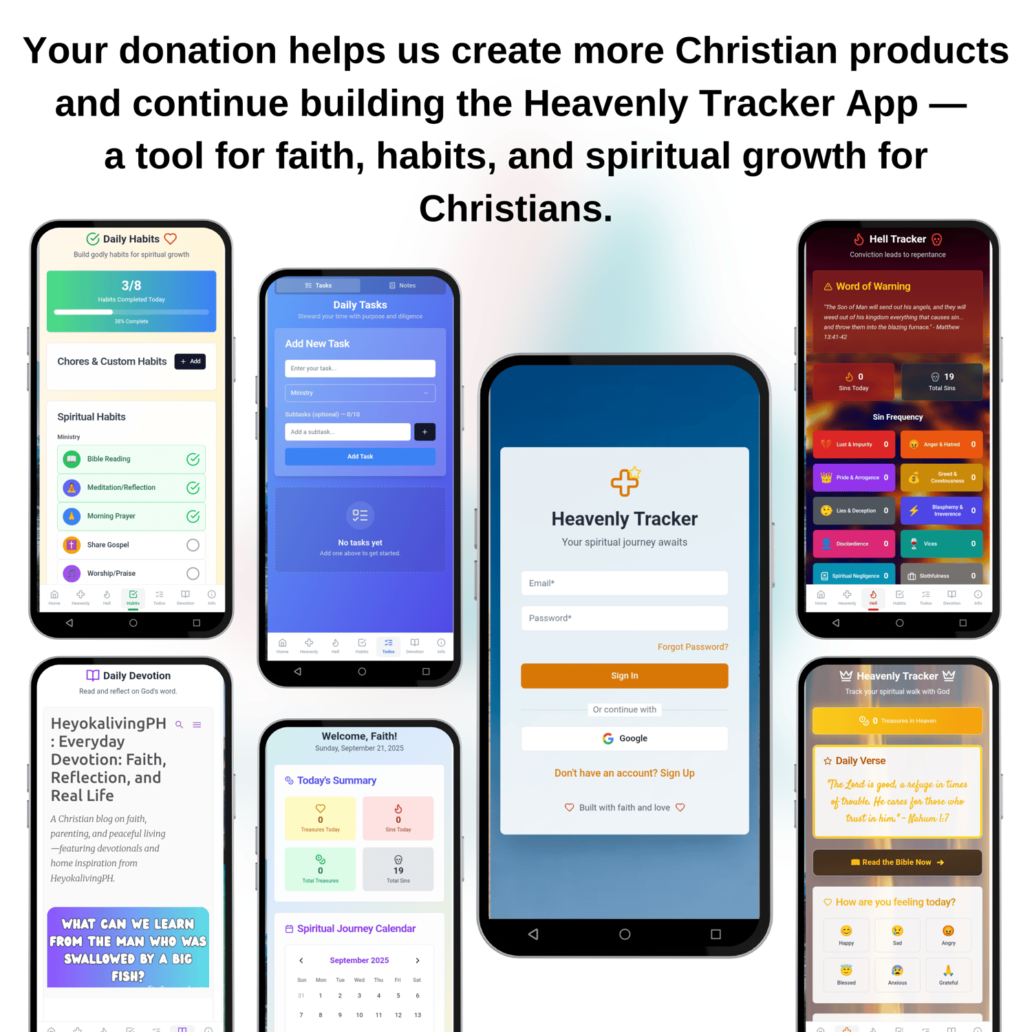 Thank you for being here 🌿 Your support helps us continue developing Heavenly Tracker App — a Christian habit, to-do, and sin tracker — as well as other Christ-centered resources and helpful products.