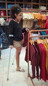 On the way, she stops at a pharmacy to pick up a few items before heading by car to her hotel. Throughout the day, the camera captures irresistible shots: Nala walking gracefully on crutches, the sensual sway of her stump with every step, the way she leans as she tries on clothes or pauses to rest… visuals designed to delight true admirers.