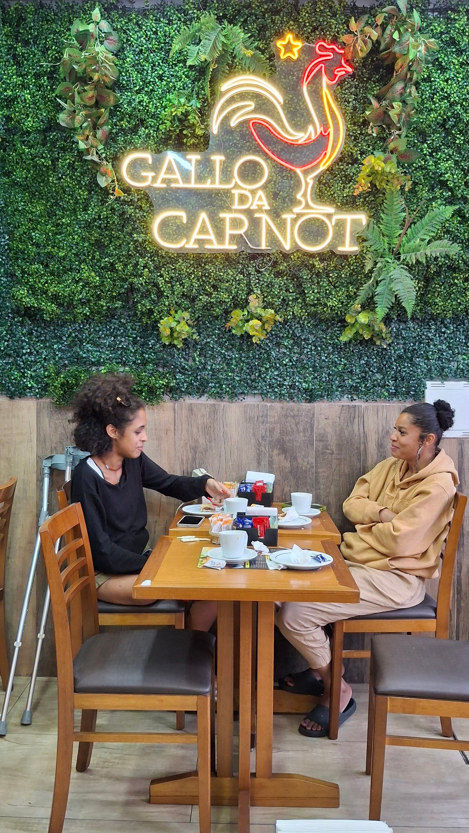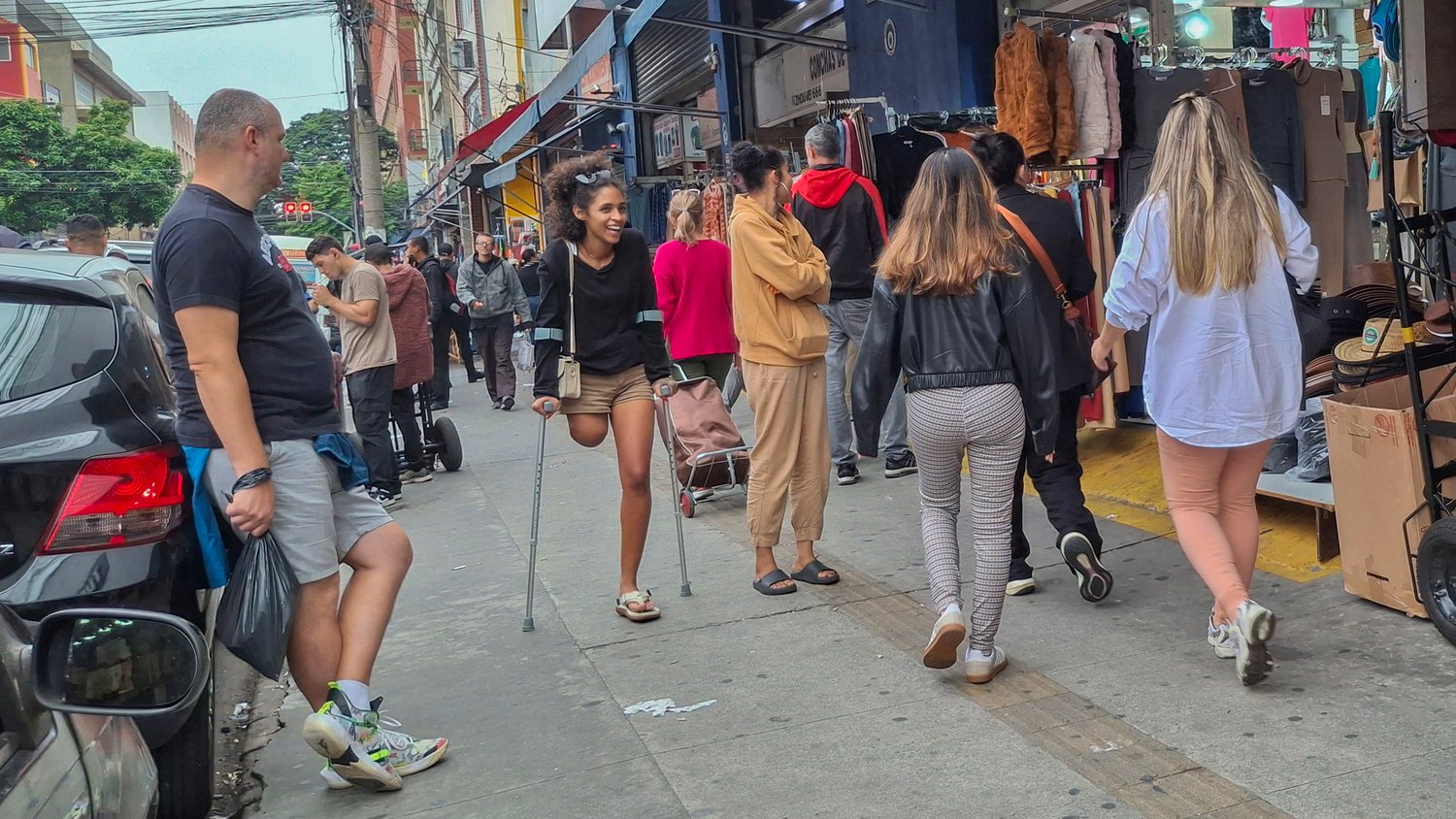 Upon arriving at the bus station after a long overnight journey, they head straight for breakfast to recover their energy. Afterwards, they explore the city’s main shopping district, where Nala selects an incredibly sexy pair of denim shorts and tries on various jackets — as, coming from the warmth of Rio, she finds São Paulo’s weather quite chilly.