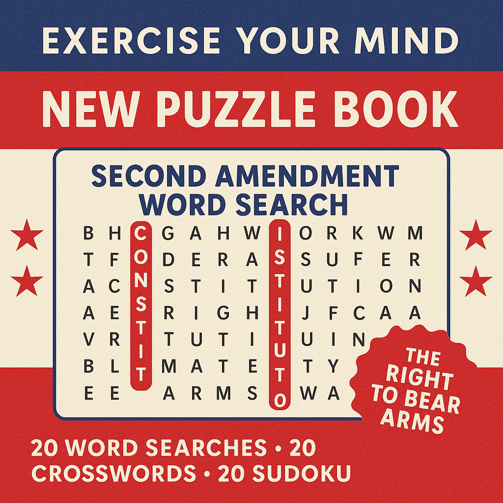 Inside this 120-page book, you’ll find 60 unique puzzles packed with more than 500 carefully selected words related to firearms history, marksmanship, constitutional rights, and American heritage. Each puzzle is crafted to sharpen your logic, expand your vocabulary, and honor the freedom enshrined in the Second Amendment of the United States Constitution.