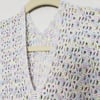 Yarn used: Lion Brand Summer Nights (82% Acyrlic, 18% Polyester; 400 m / 437 yds per 100 g / 3.5 oz): 2-4 skeins. Using different yarn may result in oversized garment with more drape.