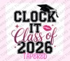 Bold. Boujee. Unapologetic. This “Clock It – Class of 2026” PNG design brings the sass all on a clean background. A perfect digital download for grads who walk the stage with style.