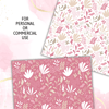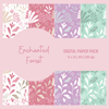 The Enchanted Forest Digital Paper Pack is a collection of four seamless patterns in shades of pink, red, green, and purple. The patterns are inspired by plants and nature with a modern, trendy vibe.