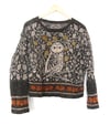 Stitches are cast on for bottom edge of the body. The rib is worked before working the Bottom Edge and then Owl motif chart. Steeks are cast on for the armholes and front neck. Once the body is finished, the steeks are reinforced before cutting. Duplicate Stitch and simple embroidery may be used to embellish your owl and leaves.