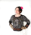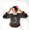 This is a pattern for a cropped jumper worked from the bottom up and with a dropped sleeve. The entire piece is worked in the round with steeks. The sleeves are worked from the top down to cuff.