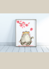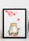 Cute Cartoon Cat Meditating under a Cherry Blossom Branch-Lovely Digital Print for Studio, Living Room, Bed Room or Office Wall Art-Beautiful Gift Ideas-Digital Downloads