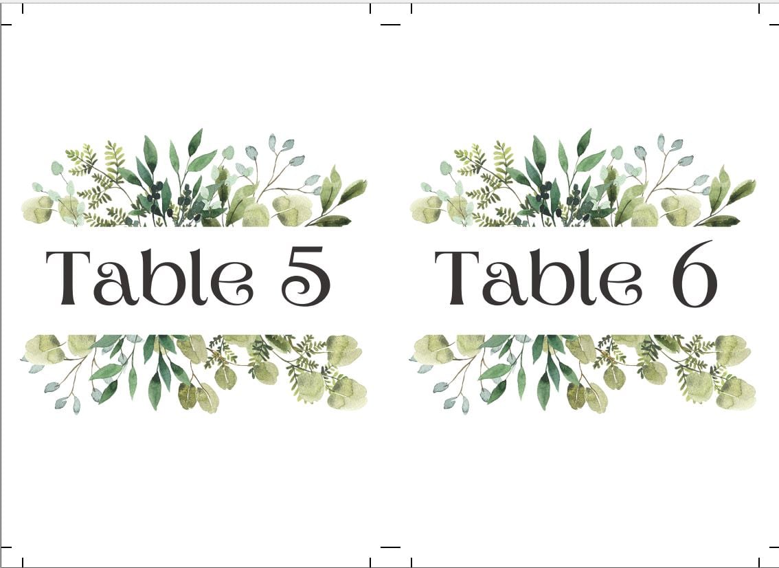 Printable Wedding Table Numbers 1-40 - green watercolor branches