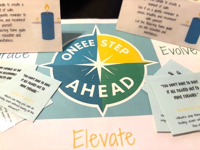 The Oneee Step Ahead Self-Care Kit was created to help you pause, reflect, and care for yourself during life’s transitions. Each kit was personally designed by me, Dr. Tecii. This kit includes mindfulness tools, affirmations, and simple activities to help you manage stress and reconnect with yourself.