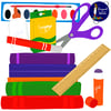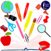 Collection includes apple, backpack, binder clip, blue crayon, book stack, composition notebook, crayons, crayon box, globe, glue, glue stick, green crayon, highlighter, laptop, magnifying glass, marker, notebooks, orange crayon, paint, paint brush, paint palette, paper clips, pencil, pencil sharpener, pink crayon, pink pencil, purple crayon, red crayon, ruler, scissors, staple, thumb tack, yellow crayon. Includes 5 BONUS backgrounds! Get one for FREE by clicking on PREVIEW. :)
